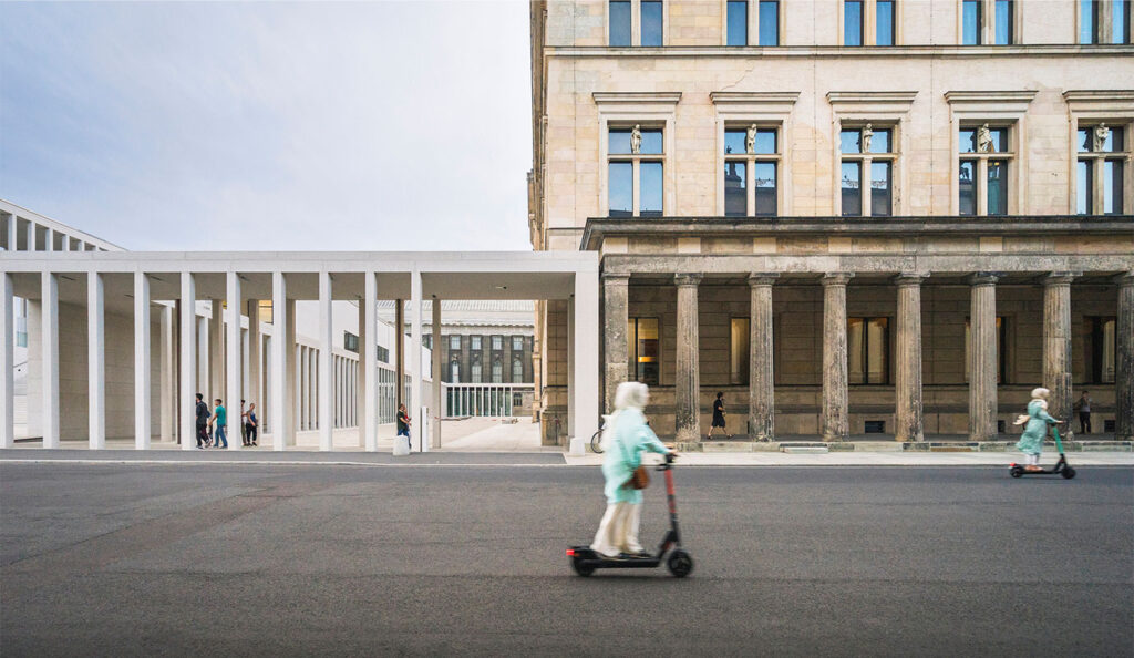 V Berlíně navázala Chipperfieldova kancelář na svou předchozí práci v roce 2021 rekonstrukcí budovy Neue Nationalgalerie, kde se restaurovala každá dlaždička i překližka z 60. let. Architekt i tady pokračoval tak v přístupu, který začal v Neues Museu: „Idea opravování a restaurování byla motivována ideou paměti a významem muzejních budov pro kolektivní paměť spíše než ideou udržitelnosti,“ uvedl na Pulsu.