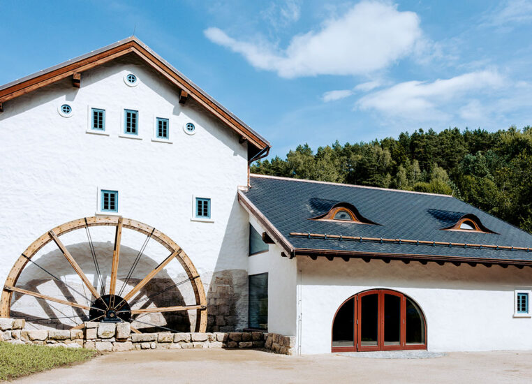 Co bylo možné z původního vybavení zachovat, našlo ve zrekonstruované usedlosti využití v nové podobě usedlosti. V desetipokojovém boutique hotelu s wellnessem tak dodnes najdete původní kamenné zdivo nebo dřevěné trámy, citlivě zapracované do moderní rekonstrukce. Před stavebními pracemi, které začaly v roce 2021, probíhal i rozsáhlý archeologický průzkum pod vedením Národního památkového ústavu, který odhalil i bohatou historii mlýna. Obilí se tu už sto let nemele, ale původní účel stavení zvenku stále připomíná obnovené mlýnské kolo, které tiše klape pod okny, ale třeba i Francisova turbína vedle lobby baru vybudovaného z někdejší mlýnice.