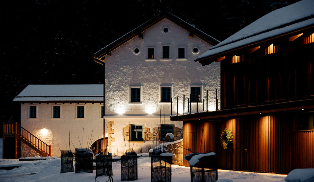 Ve sklepě, do nějž se dá vejít po točitých schodech od recepce, už se dnes neotáčí turbína, ale skladuje se tu víno. Snad to jediné tu není lokální – stejně jako sklenky značky Izaak Reich, v nichž se tu podává, pochází z Moravy. Vhodně doplní každý pokrm z kuchyně pod taktovkou šéfkuchaře Dominika Unčovského, která staví na sezonních lokálních potravinách. Hosté si je vychutnají v restauraci postavené na místě původních historických chlévů a v létě i pod širým nebem.
